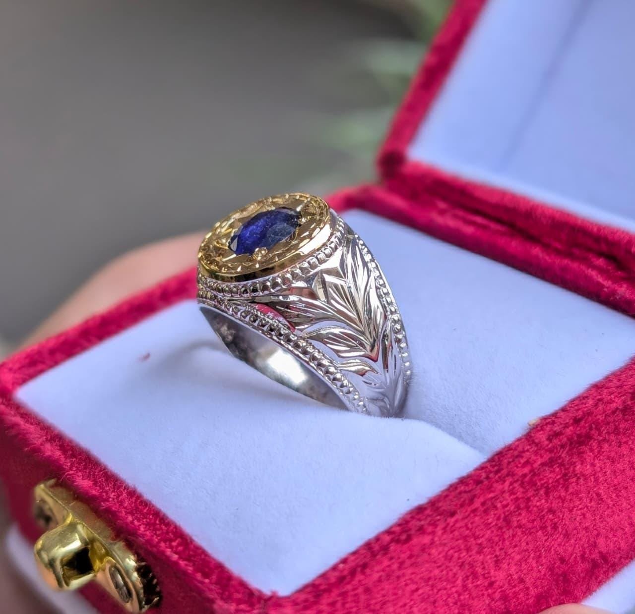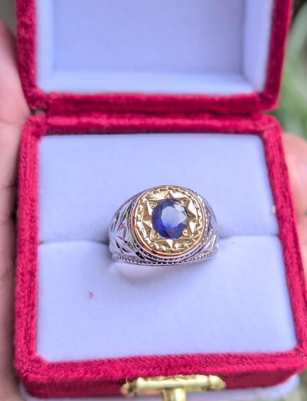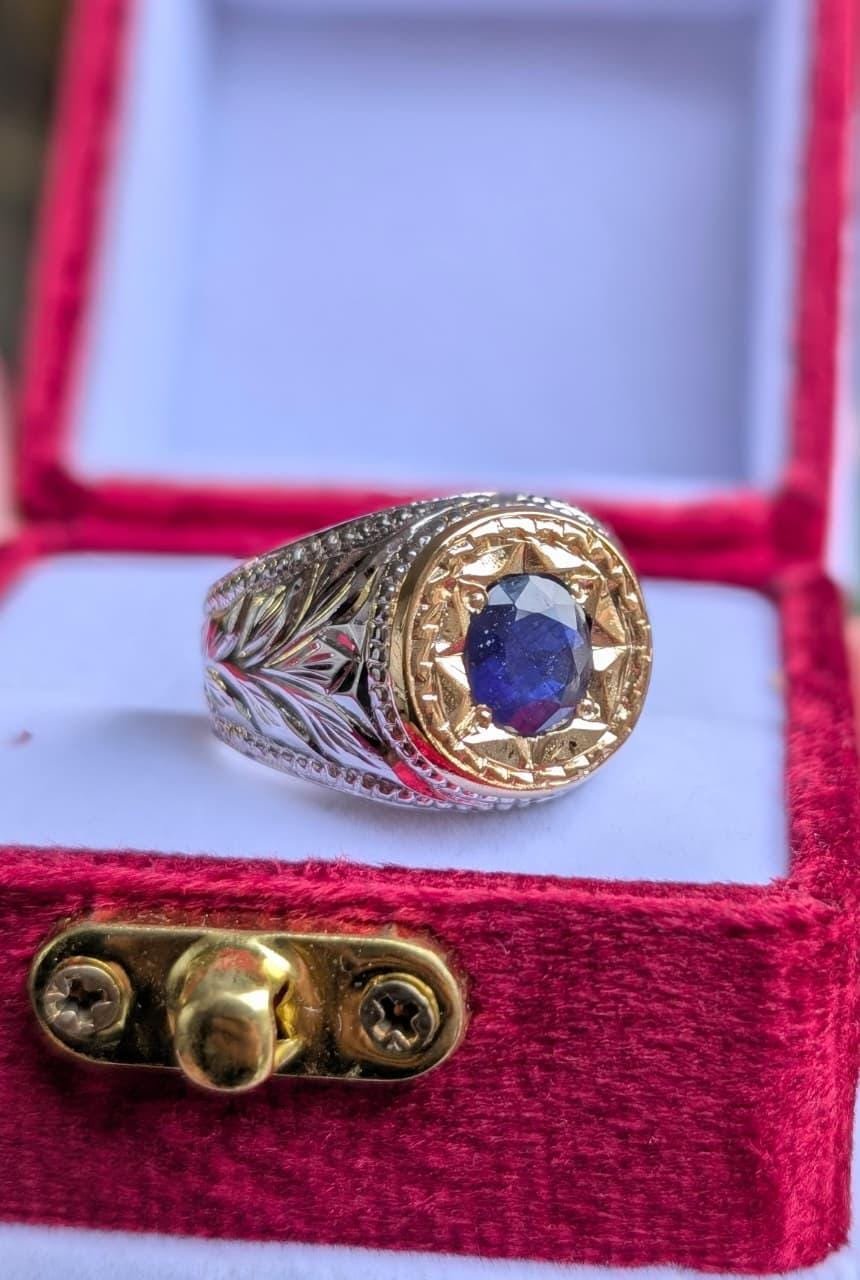 This luxury blue sapphire (Neelam) signet is a powerful blend of traditional craftsmanship and modern elegance. Carefully handcrafted with intricate engraving, this piece is designed for men who appreciate bold style, spiritual significance, and timeless luxury.