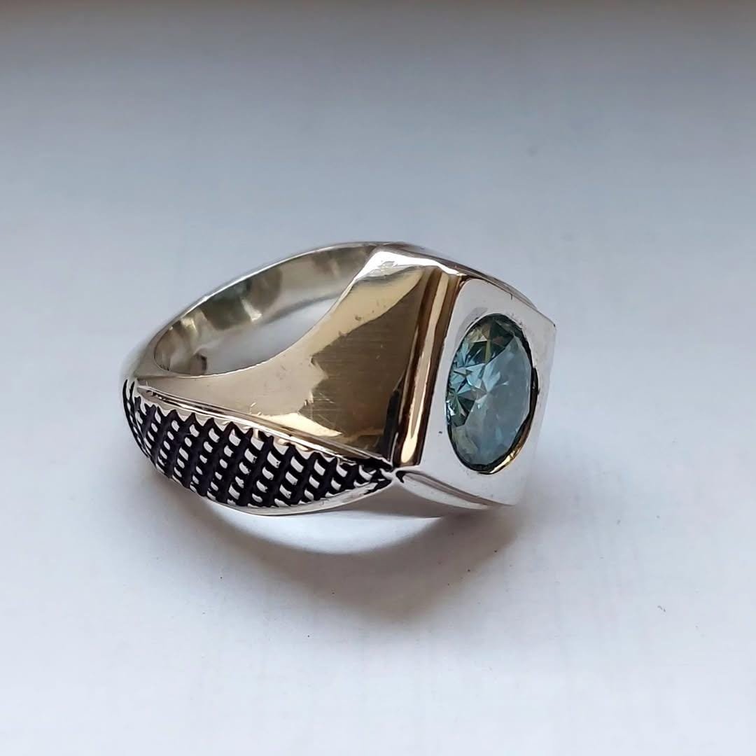 ✅ TEXTURED SILVER BAND: The band showcases a detailed, oxidized texture on the sides, contrasting beautifully with the polished silver