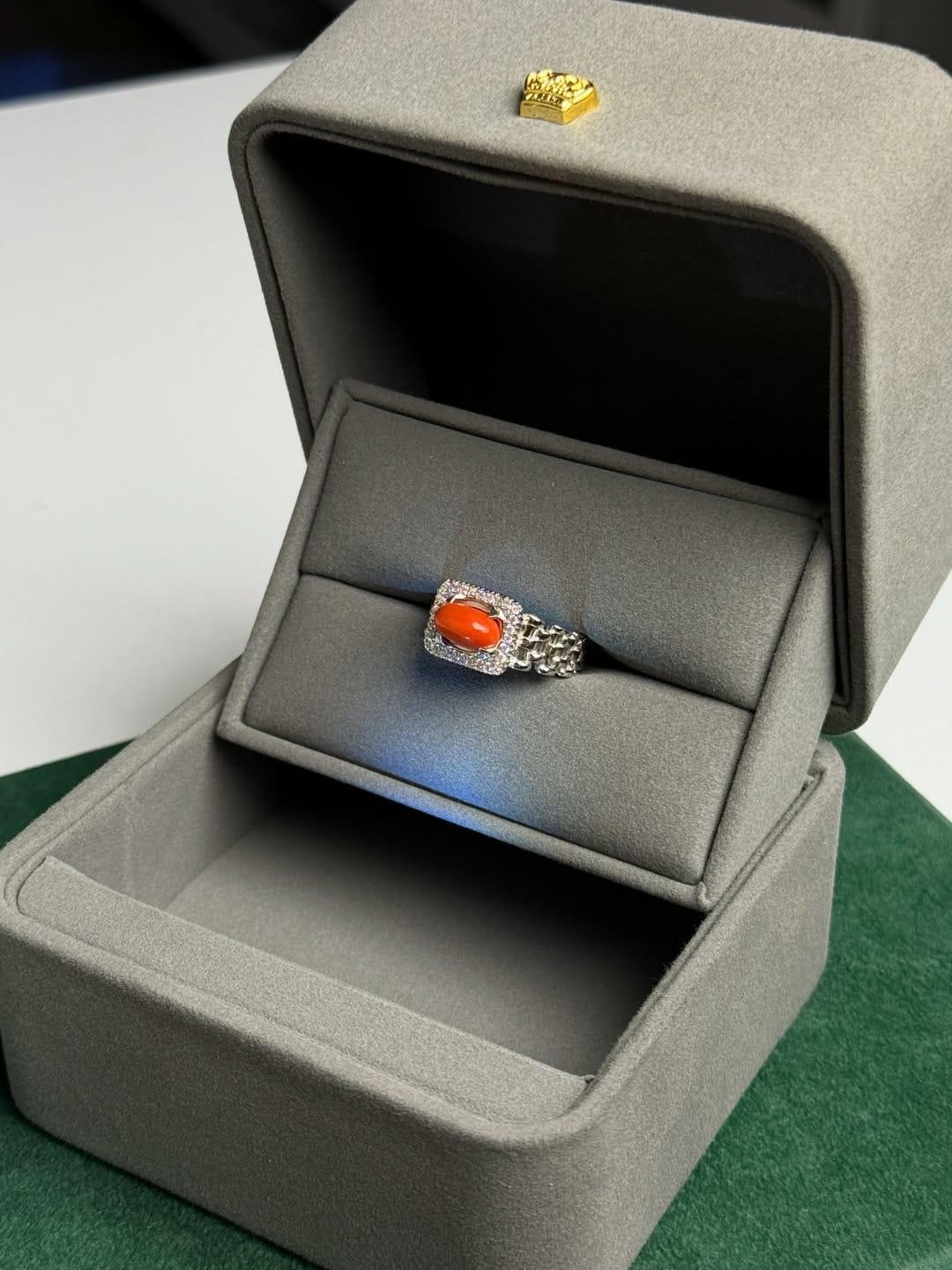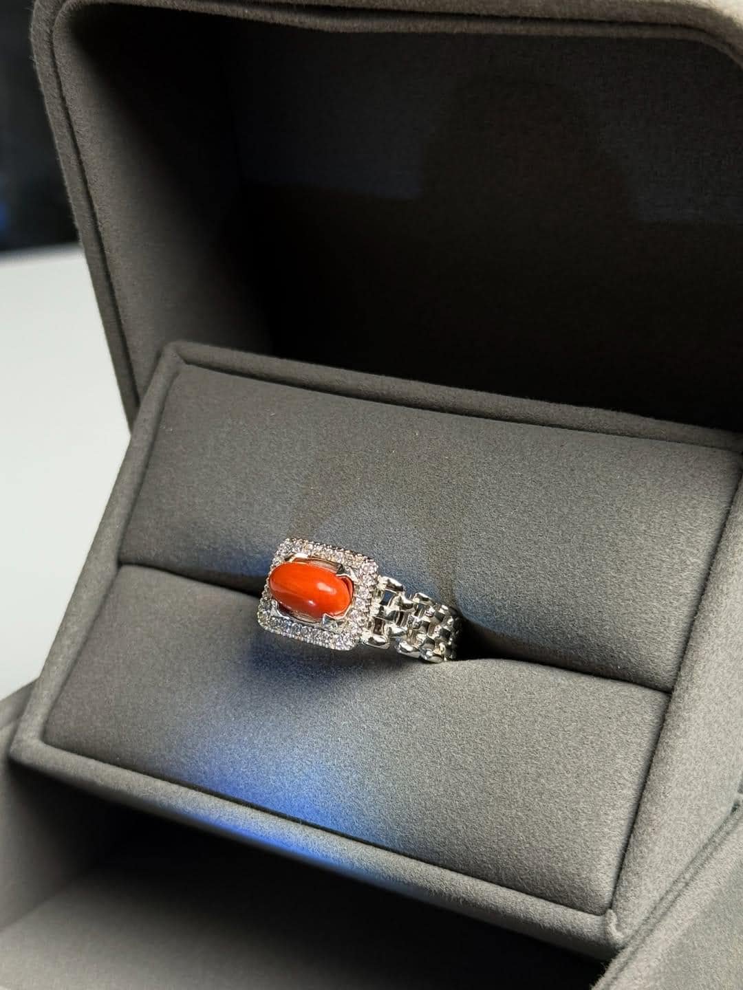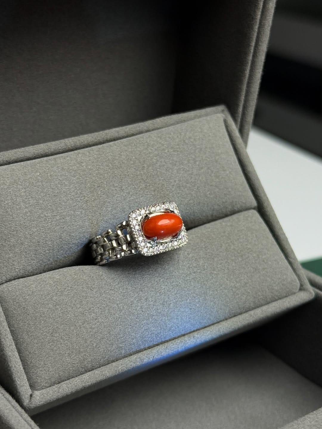This handcrafted men’s signet features a natural red coral (Marjan / Moonga) stone with a rich, vivid hue, set in a solid silver band. Red coral has been worn for centuries for its bold appearance and traditional value. Designed for everyday wear or special occasions, this ring balances heritage aesthetics with a strong modern profile.